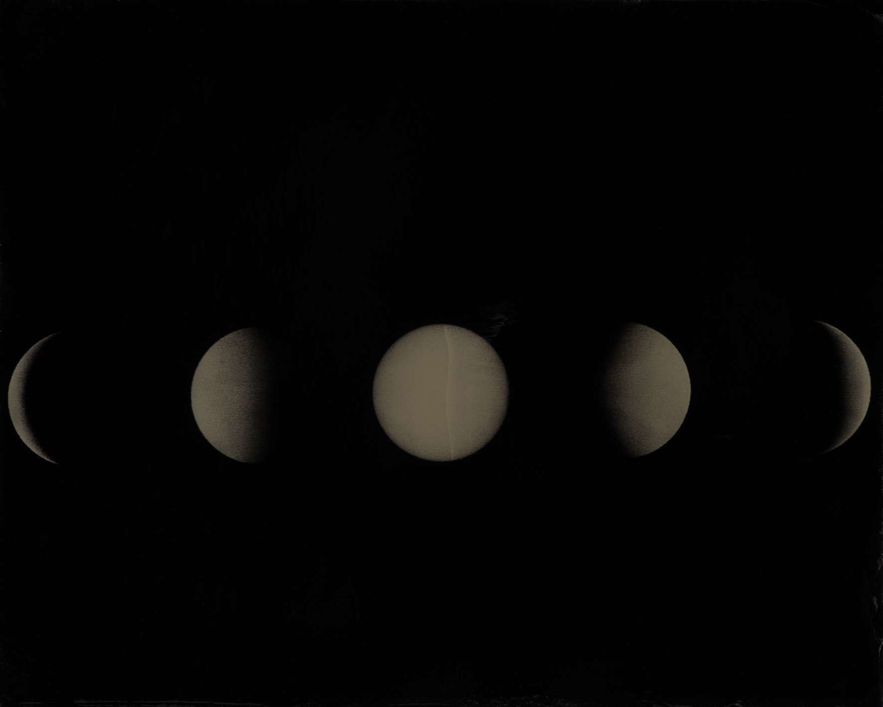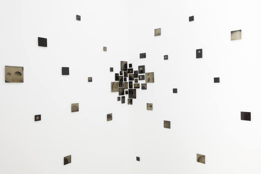 Installation of 62 pieces of wet collodion on a glass support immersed in liquid silver
